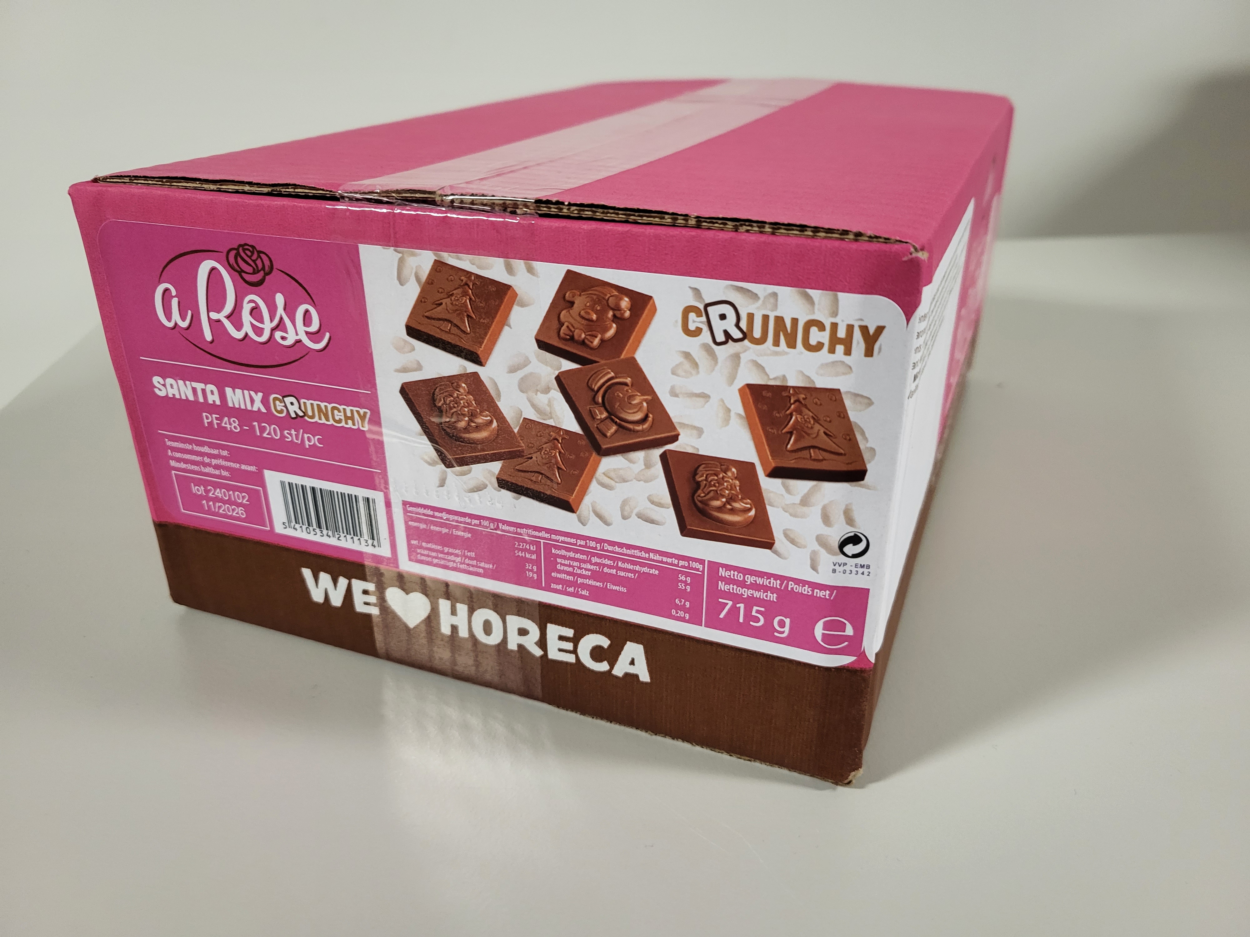 Doos chocolade kerstfiguurtjes 120 stuks. Melkchocolade crunchy